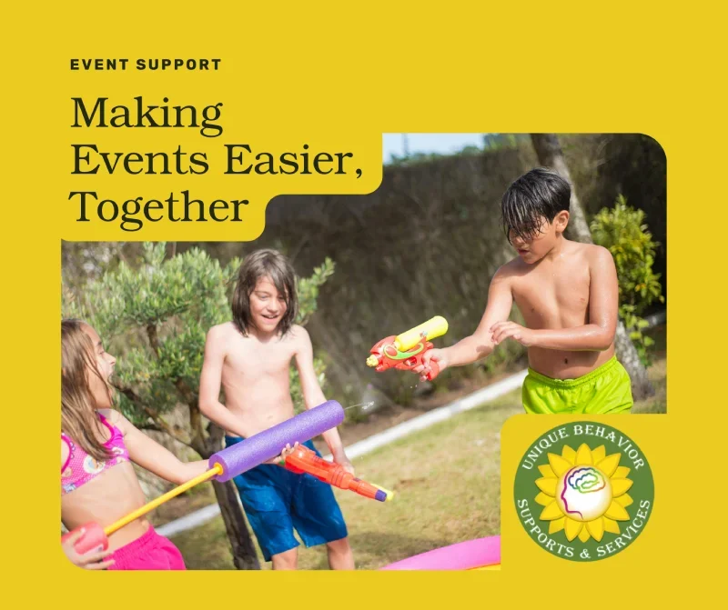 Life’s biggest moments, weddings, birthdays, graduations, or spiritual gatherings, should be inclusive for every member of the family. Yet these events can sometimes feel overwhelming for individuals with autism and their families. Unique Behavior provides one-on-one ABA-trained support to ensure your loved one is safe, comfortable, and able to fully be a part and fully enjoy the celebration.
